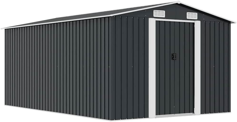 Color: Gris antracitaMaterial: Acero galvanizadoDimensiones totales: 257 x 392 x 181 cm (ancho x profundo x alto)Tamaño puerta corredera: 80 x 154 cm (ancho x alto)Superficie del suelo: 245 x 378 cm (ancho x profundo)Dimensiones ventilación (cada una): 23 x 10 cmCon 4 ventilacionesInstrucciones de seguridad