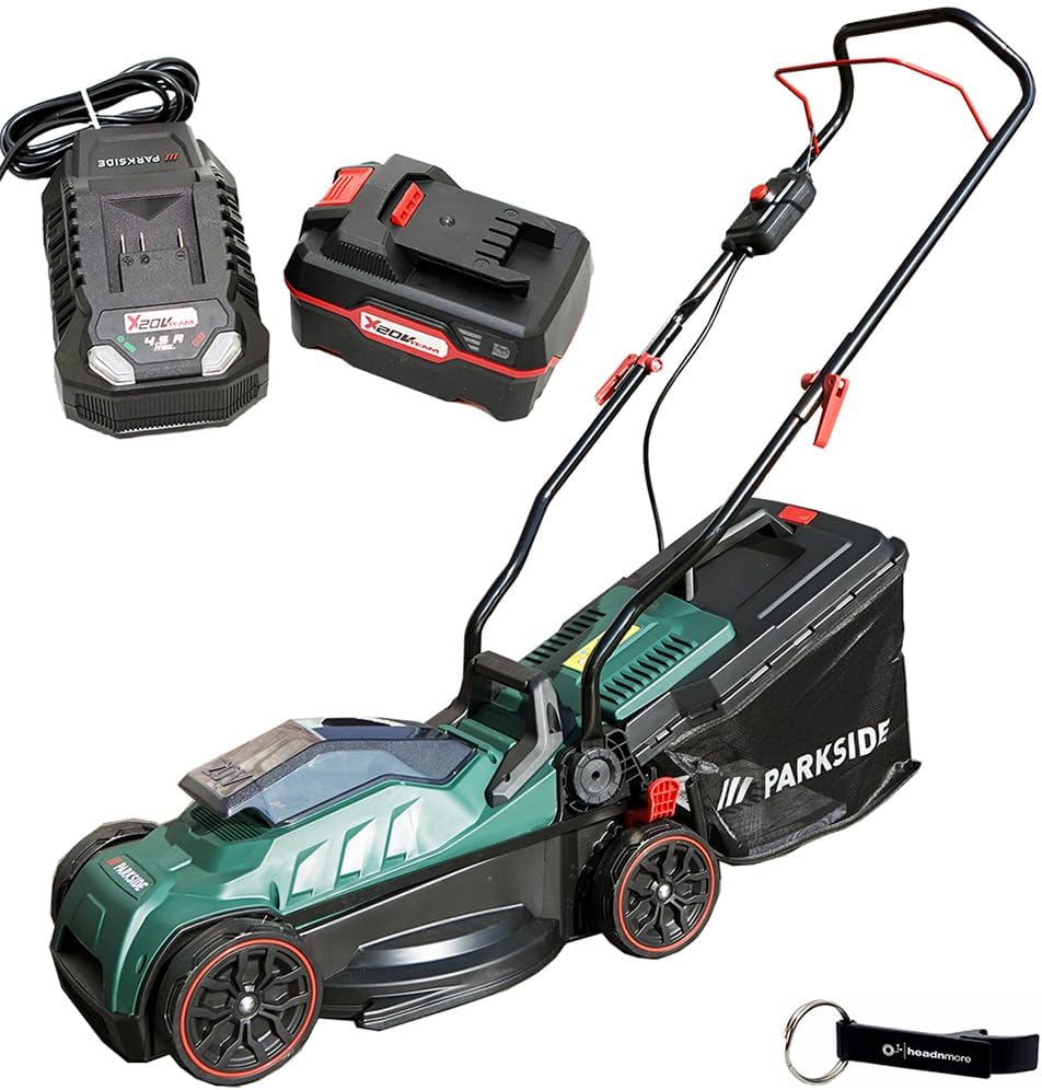 Este paquete incluye un cortacésped inalámbrico Parkside 20 V PRMA 20 y un abrebotellas HEADNMORE como llavero. El cortacésped cuenta con un cuchillo de acero especial y un ajuste de altura centralizado en 5 niveles. El mango es ajustable en altura y tiene un bloqueo de encendido. La estructura es resistente e incluye un asa de transporte. Características adicionales: compartimento para pilas con tapa plegable, inserto de mantillo para reutilizar material como fertilizante, caja de recogida de 32 L extraíble con asa e indicador de nivel, función de cierre rápido, compatible con baterías de la serie Parkside X 20 V Team. Especificaciones técnicas: ancho de corte de 33 cm. Altura de corte de 25-65 mm (5 niveles). Volumen de recogida de 32 l. Material: plástico. Dimensiones: 112 x 105 x 40 cm. La batería de iones de litio incluye un indicador de estado de 3 niveles. Compatible con la serie Parkside X 20 V Team. Especificaciones de la batería: tipo de iones de litio, voltaje de 20 V, capacidad de 4 Ah, 80 Wh. Tamaño: 126 x 71 x 84 mm. El cargador tiene apagado automático e indicador de carga LED, con posibilidad de fijarlo a la pared. Compatible con la serie Parkside X 20 V Team. Especificaciones del cargador: potencia de 120 W, corriente de carga de 4,5 A, tiempo de carga de 2 Ah en 30 minutos, 4 Ah en 60 minutos. Longitud del cable: 2 m. Material: plástico. Tamaño: 15 x 9 x 7,4 cm. Características del llavero HEADNMORE: material de aluminio, tipo abrebotellas, mide 55 x 10 x 15 mm.